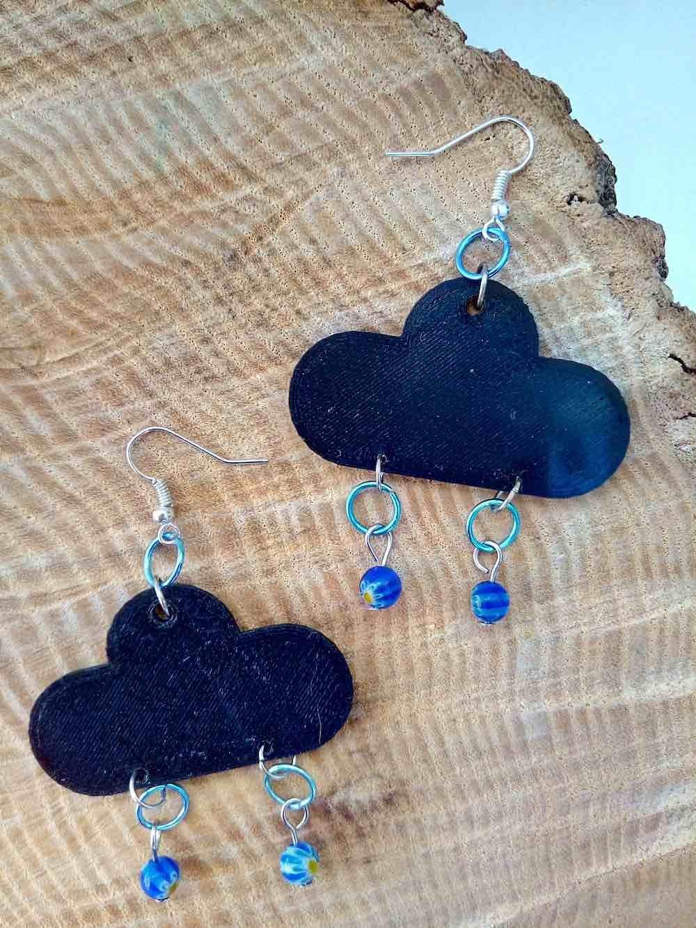 These wonderful stormclouds were actually our chief designer's first ever 3D print design, and still one of our favourites! The printing makes them nice and light, and the glass beads add a funky rain effect.